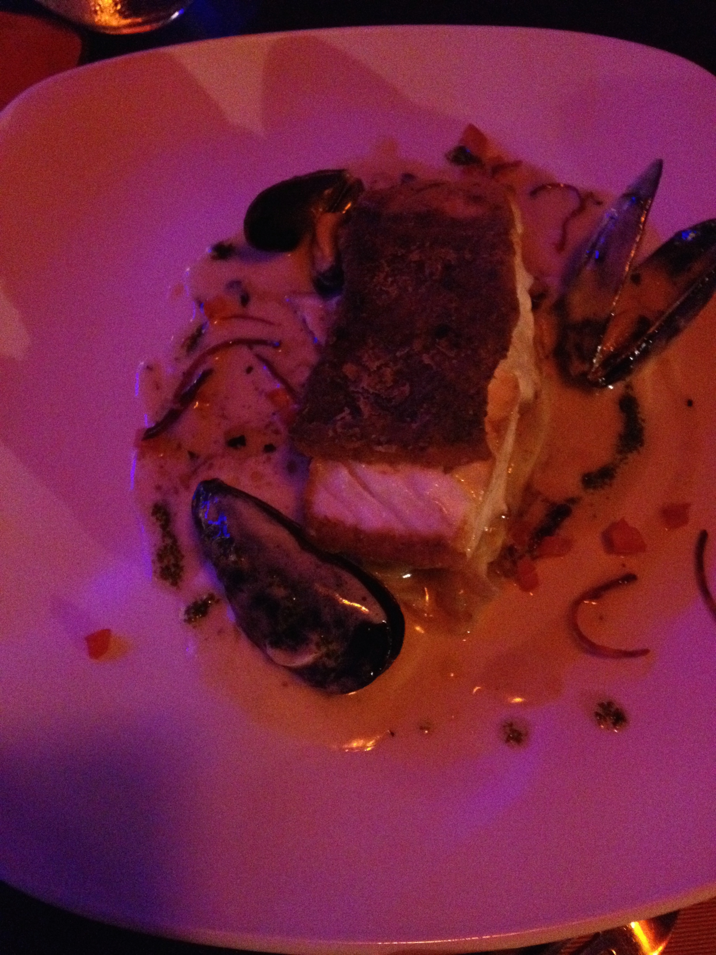 The amuse bouche was a ham and cheese airbag which was excellent and a delicious passion fruit bonbon which exploded in your mouth served to clean the palate.