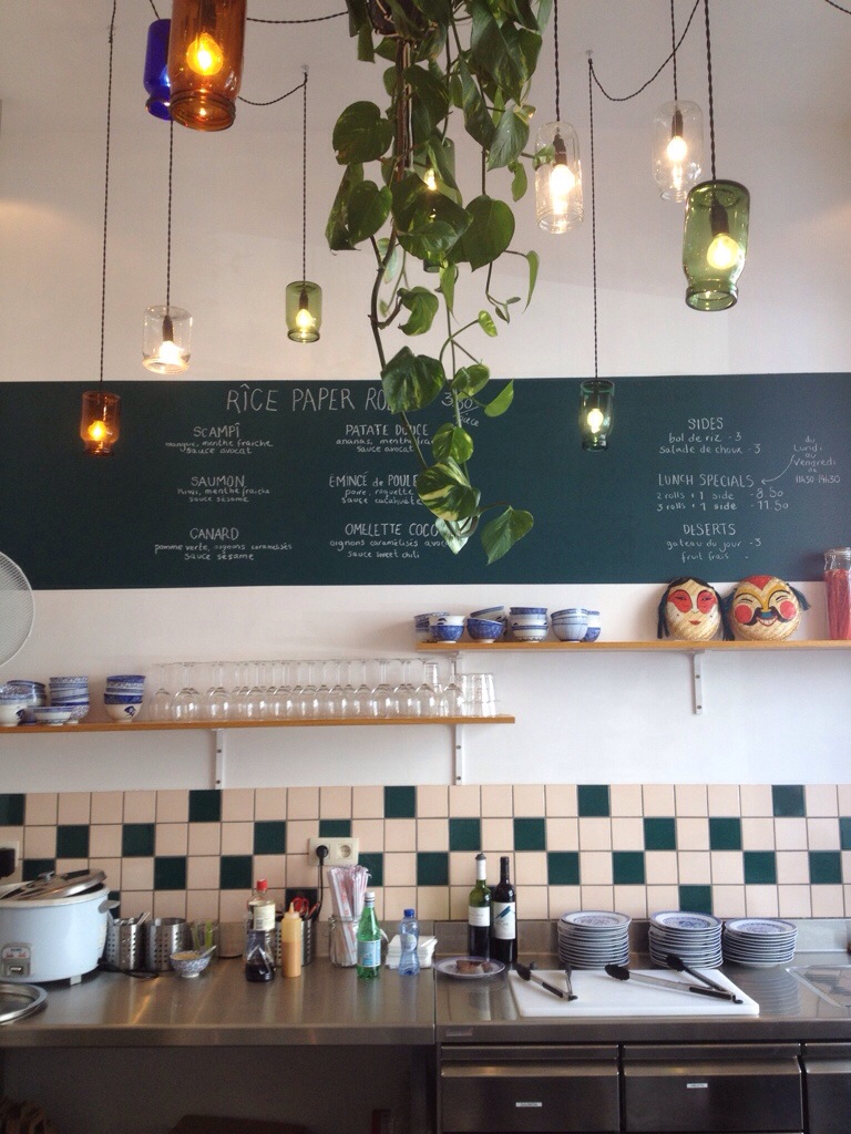 The place is very small but has a very welcoming interior design, I liked the display behind the counter with white and green ceramic tiles and the use of upside down colourful jars as hanging lights.