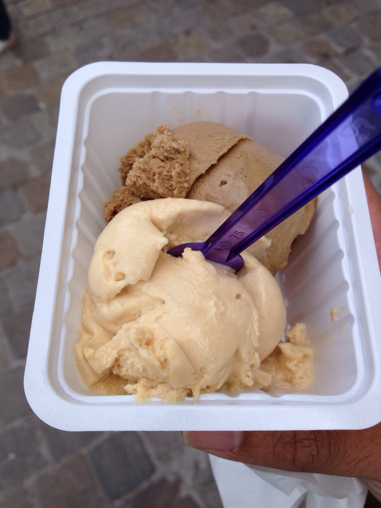 Nevertheless, on the day we visited there were no exotic flavours. Instead what he had were 8 different ice-creams including chocolate, speculoos, lemon, ‘roasted coffee’, salted caramel, cassis, strawberries and vanilla. The ice-cream maker is part of the Slow Food movement and there is no question as to why this is the case. He only uses products which are in season and only if he is convinced that they are good enough to make great ice-creams.